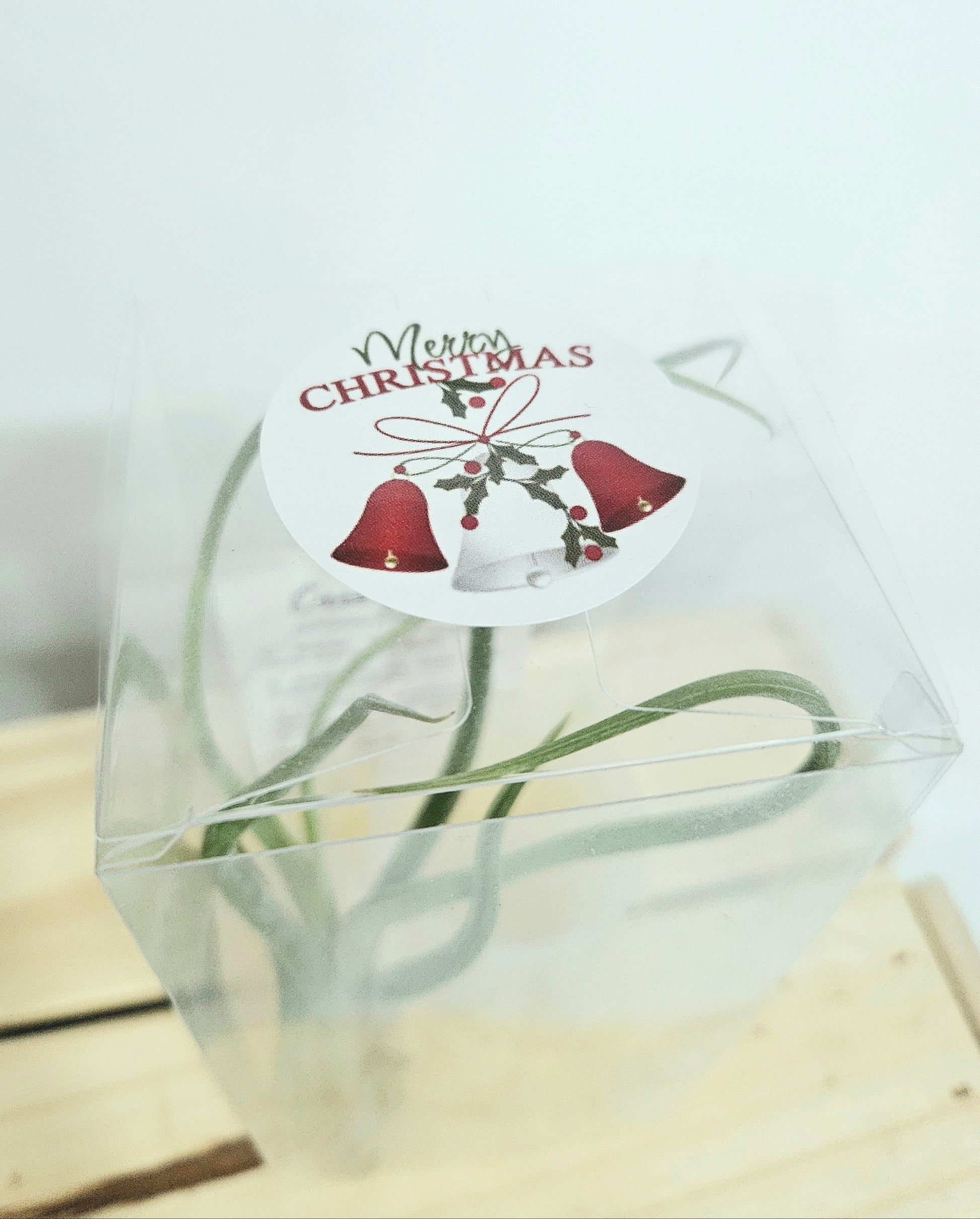 Bring a touch of calm, natural beauty into any space with our Merry Christmas Airplant Gift Set. Each box features a premium Tillandsia Caput Medusa paired with a soft frosted vertical holder, packed neatly in a clear gift box with natural shredded fill.